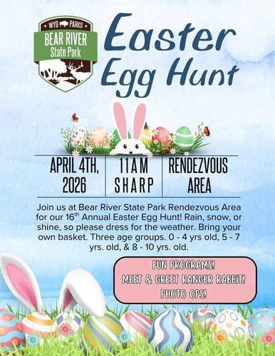 Join us at Bear River State Park Rendezvous Area for our 16th Annual Easter Egg Hunt! Rain, snow, or shine, so please dress for the weather. Bring your own basket. Three age groups. 0-4 years old, 5-7 years old, & 8-10 Years old.