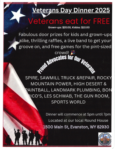 Veterans eat for free. Non-veterans $20.00, Kids $10.00, Hosting raffles.