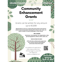 Grants are available for amounts up to $5,000! These grants provide opportunities to serve our communities through projects that enhance natural resources and promote learning, with a focus on soil, water, air, plants, animals, and natural landscapes in Uinta County.